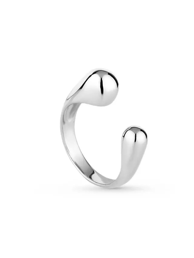 Seu formato aberto traz um charme extra e permite um ajuste confortável em diferentes dedos. Isso faz com que o modelo se adapte ao estilo e à rotina de quem usa, proporcionando liberdade e versatilidade para compor combinações criativas e estilosas. O brilho do banho em prata traz um ar ainda mais refinado, realçando o design limpo das esferas com um toque sutil de glamour.