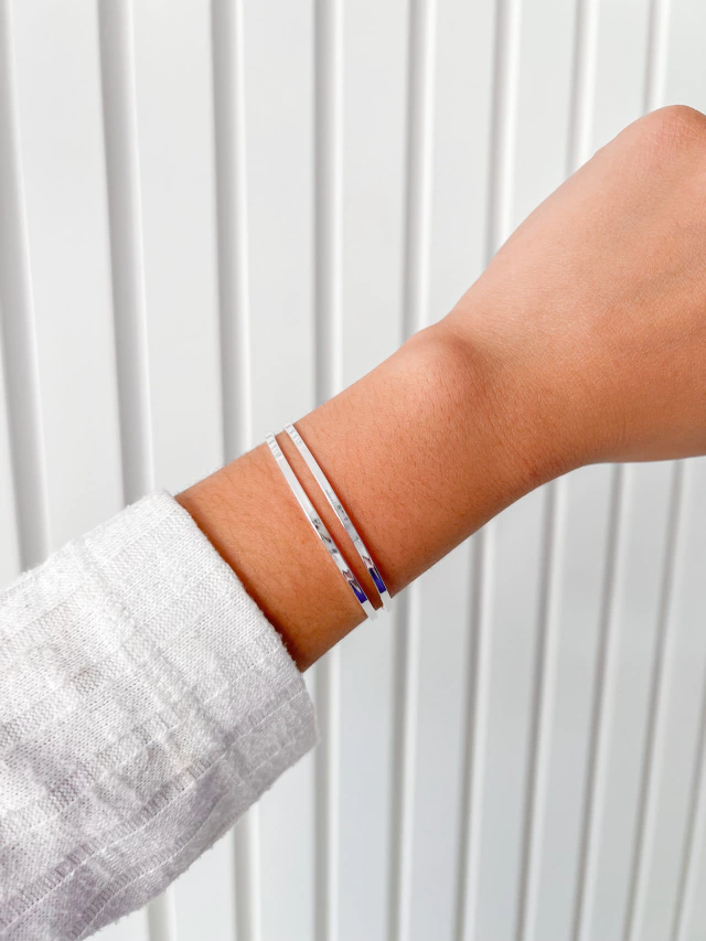 O Bracelete Vazado Prata é uma peça moderna e marcante, perfeita para quem busca um acessório com presença e estilo. Com design vazado em duas tiras finas paralelas, ele cria um visual leve e geométrico, que destaca o pulso com sofisticação. Seu acabamento polido garante brilho e um toque contemporâneo à composição.