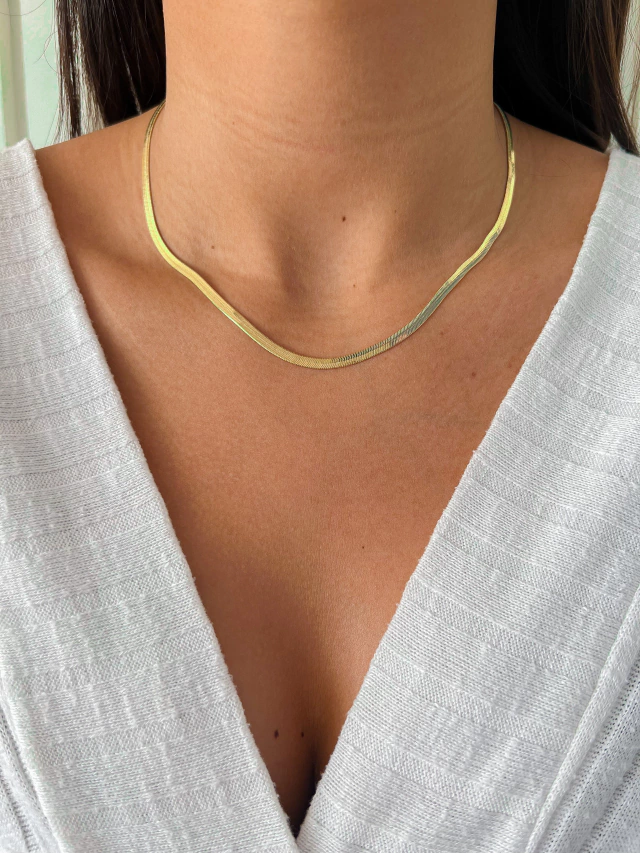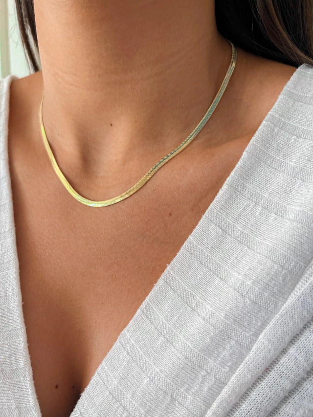 Seu dourado polido reflete a luz de maneira uniforme, trazendo um efeito impactante, mas sem exageros. Uma peça versátil e atemporal, que funciona tanto como protagonista em looks minimalistas quanto como base para sobreposições com colares mais delicados. Perfeita para quem ama um visual moderno, elegante e cheio de personalidade.