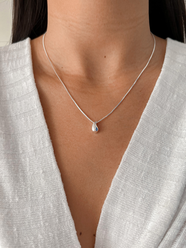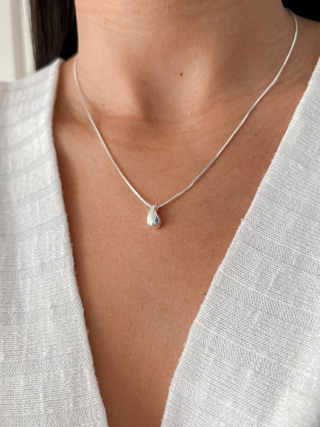 Pingente: Gota lisa e polida, adicionando um toque de sofisticação ao visual.