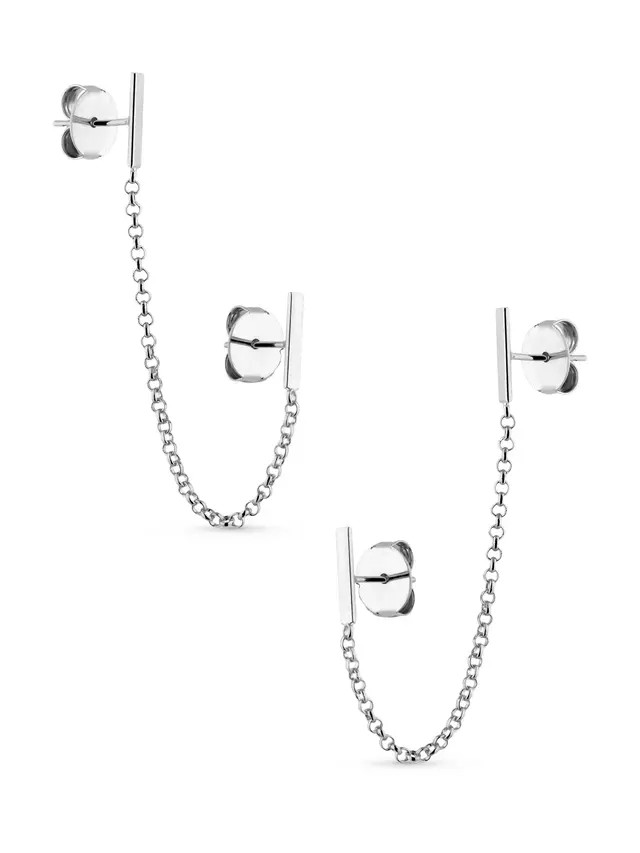 Design: Palito fixo com corrente pendente, criando um visual moderno e delicado.