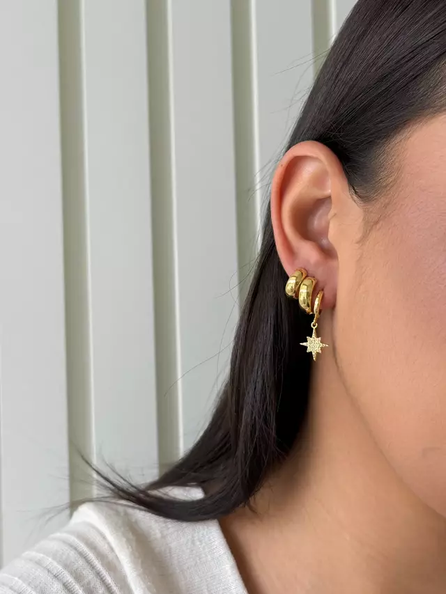 O Kit Argolas Estrelas Dourado é a combinação ideal para quem ama acessórios modernos, com brilho na medida certa e um toque de personalidade. O mix une o design marcante da Argola Estrela Cravejada — delicada, com brilho intenso e formato encantador — com a elegância minimalista da Dupla Carly, que traz volume e presença de forma sutil. Juntas, as peças criam uma composição equilibrada, perfeita para iluminar o visual e valorizar o rosto com muito estilo.